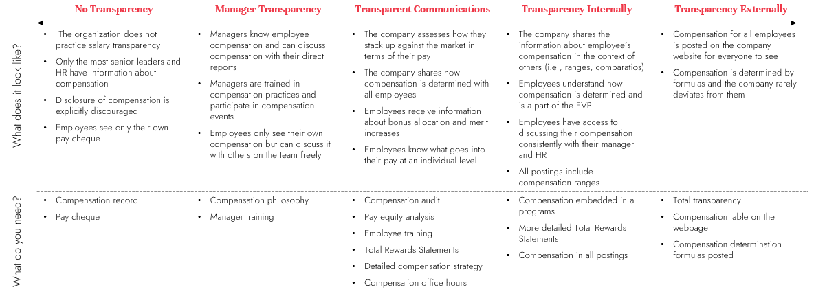 Here is the spectrum that PayScale has come up with for pay transparency: