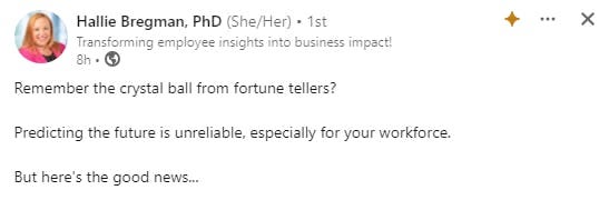 This week, I did not know what I should write about, so I went on LinkedIn to find this interesting post by Hallie Bregman: